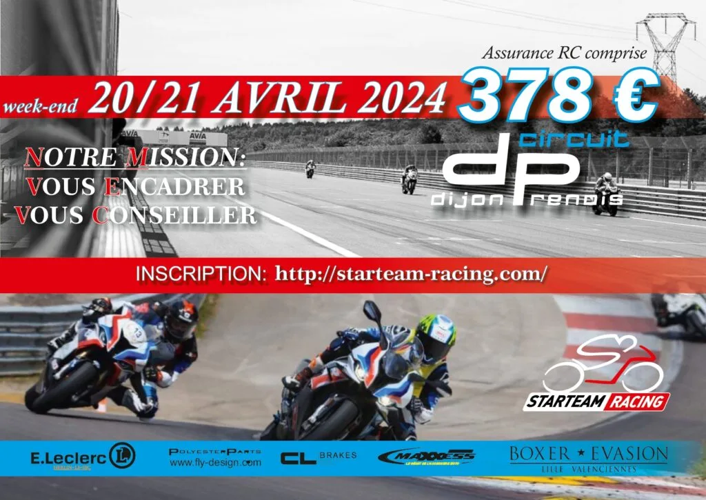 Toutes les news Actualités · 24 janvier 2024 Dijon-Prenois ! Dijon-Prenois À vos inscriptions pour l'événement Dijon-Prenois Inscriptions Participez à Dijon-PrenoisInscrivez-vous dès maintenant pour rejoindre l'événementS'inscrire À lire aussi Actualités · 25 avril 2026 StarTeam Racing à Croix-en-Ternois — Compte Rendu 1ère Manche Championnat Benelux Moto 2026 Actualités · 20 avril 2026 Journée Roulage Moto 2026 - Circuit Carole & Croix en Ternois Actualités · 31 mars 2026 Article Sponsorisé : KML Énergie 🔧